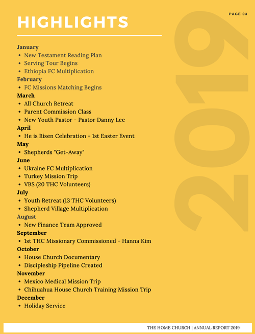 When I look at this list of highlights right here – it’s a tangible snapshot of what God did in and through us. This doesn’t account for all the “smaller” ways our church showed growth (increased attendance in Bible study classes, ASK Meetings, baptisms, members serving, and just the general sense of love, unity, and mission clarity. THC, we look more like Jesus today than we did 1 year ago. My heart is filled with joy at the spiritual growth in your lives!