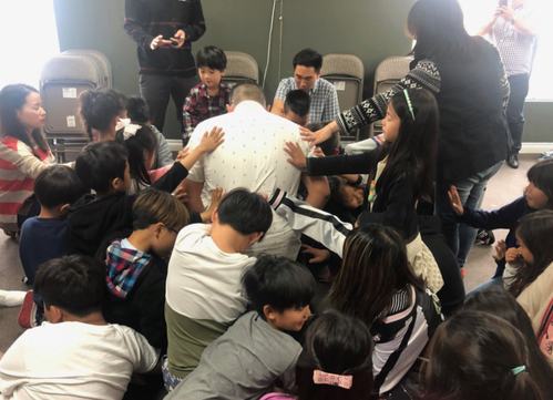 BEAUTIFUL CHURCH ELEMENTARY CHILDREN PRAYING OVER ME AFTER I GUEST SPOKE.